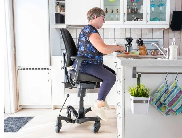 A cooking chair for elderly users offers a practical and preventive solution to this growing challenge. Unlike standard chairs or stools, cooking chairs are specifically designed to support active use in the kitchen. Adjustable seat height allows users to work safely at counter level, while stable wheels with brakes enable controlled movement between work surfaces without the need to walk or overreach.