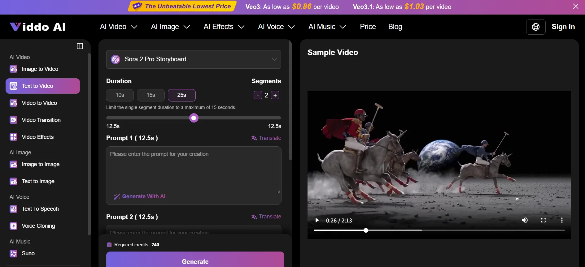 Viddo AI supports numerous popular AI models, and you can freely choose the one or more AIs to use based on your creative goal, including: Veo3, Veo3 Fast, Hailuo 02, Runay gen-4, Suno V3.5, Suno V4, Suno V4.5, Midjourney, Seedance 1.0, Runway Aleph, Pixverse V5, and Kling V2.1, etc.