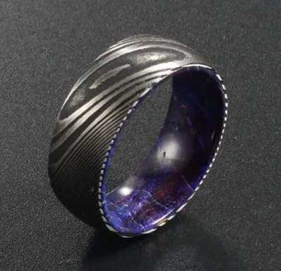 Design customization extends beyond choosing base patterns. Width adjustments alter how patterns display—wider bands reveal more intricate details, while narrower profiles create compressed, intense designs. Combining Damascus steel with contrasting materials like rose gold liners, carbon fiber inlays, or gemstone settings creates hybrid designs. Craftsmen can also manipulate acid etching intensity to produce high-contrast dramatic patterns or subtle, understated flows depending on personal preference, ensuring each ring reflects individual style while maintaining the material’s inherent uniqueness.