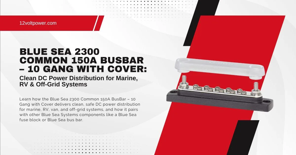 The Blue Sea 2300 Common 150A BusBar – 10 Gang with Cover is a compact, marine-grade bus bar designed for clean, safe DC power distribution in 12V and 24V systems. Whether you’re wiring a boat, RV, van conversion, off-grid cabin, or emergency vehicle, this component helps you replace messy, stacked battery lugs with a professional-grade distribution point.