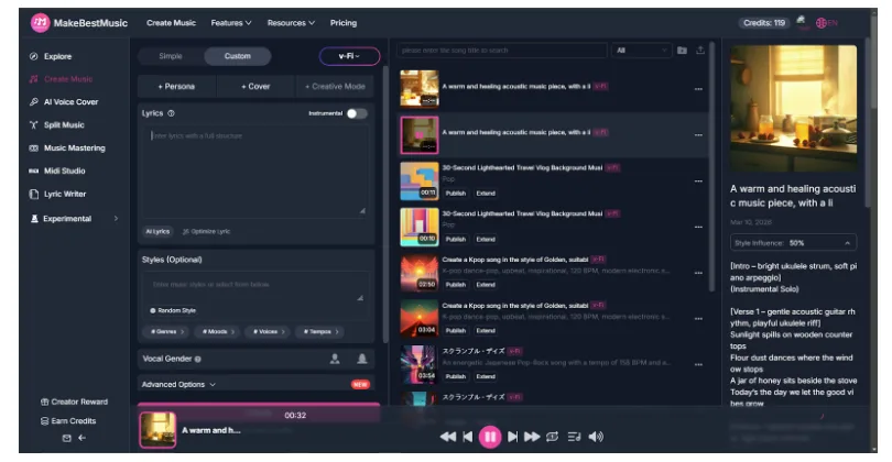 • Advantages of AI Singing: If your video or live stream requires vocal elements—such as a sung version of a product slogan—MakeBestMusic’s AI Singing feature can produce fully original vocals, which also come with complete copyright. This avoids the complex issues often involved in using real human singers.