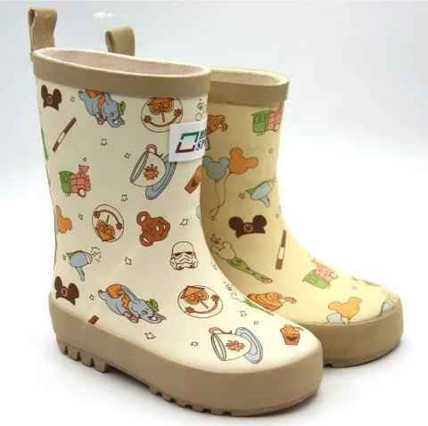 - High-definition, full-coverage printed vulcanized rubber boots featuring popular cartoon characters, animals, dinosaurs, unicorns, floral patterns and seasonal holiday designs