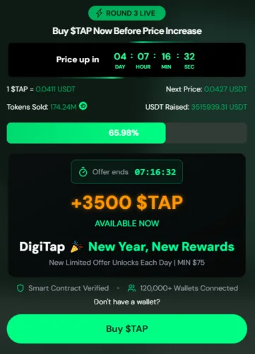 Digitap’s massive utility appeals to early buyers who consider it a lucrative long-term investment opportunity. The project has raised over $3.5 million, which makes it one of the most successful crypto presales in the market.