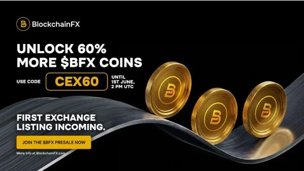 BlockchainFX is currently priced at $0.035 per $BFX token, with a launch price locked in at $0.05. The presale has already raised over $14.38M, leaving just a sliver of room before the $15M softcap hits and the launch goes live. The new bonus code CEX60, tied to the first exchange listing reveal, hands investors 60% extra $BFX tokens, but only until June 1st at 6 PM Dubai time.