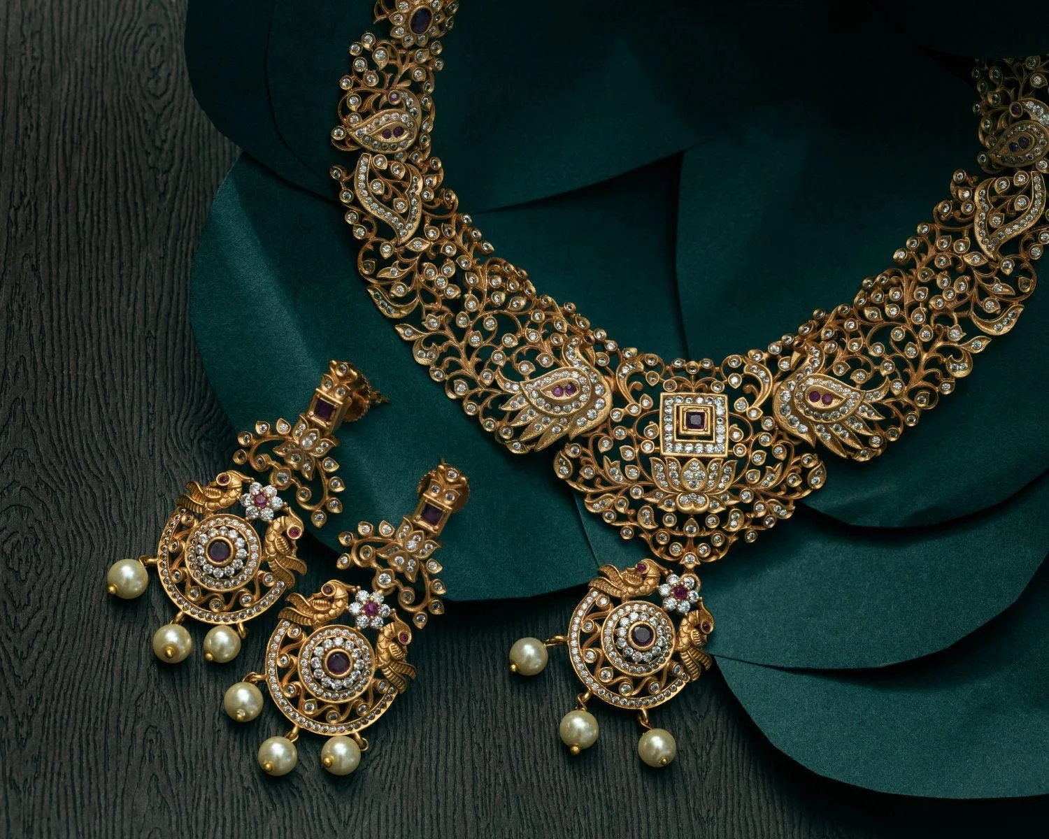 What is so special about Jadau Polki Jewellery? It is not simply jewellery, it is an art form. The handcrafted items are adorned with uncut diamonds, gemstones, and gold, which are carefully set by skilled artisans into exquisite pieces.