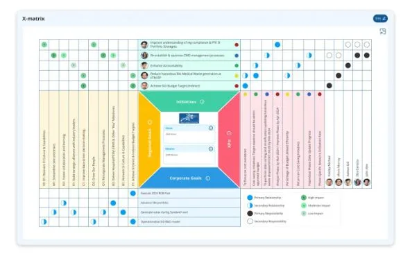 Digital Hoshin Kanri platforms make this possible. They turn static X Matrices into interactive, real-time dashboards that show performance at every level. Leaders can identify when objectives drift off target, teams can track their contributions daily, and updates flow automatically across departments.