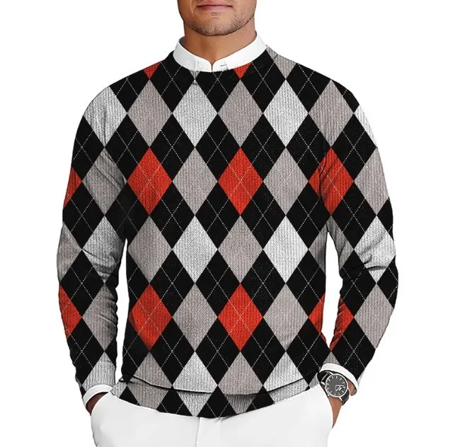 2. Argyle red black Men’s Golf Crewneck Pullover Sweaters Ugly Sweater