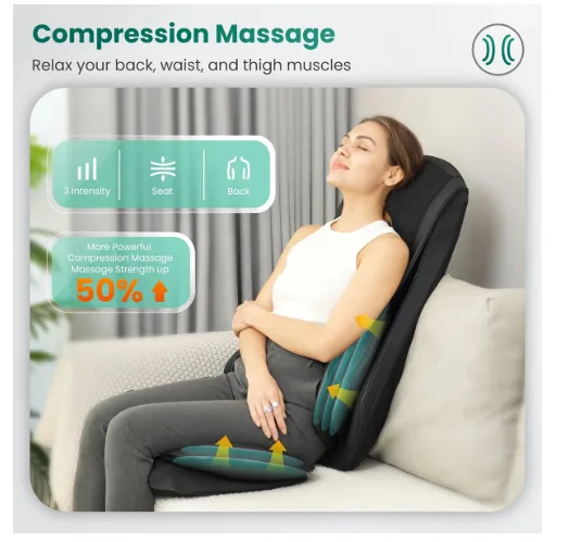 - Ergonomic Design: The design of the massager means that it fits around your body comfortably, offering a natural and ergonomically correct massage experience. Chair pads can be adjusted easily into various positions for a more targeted massage where needed.