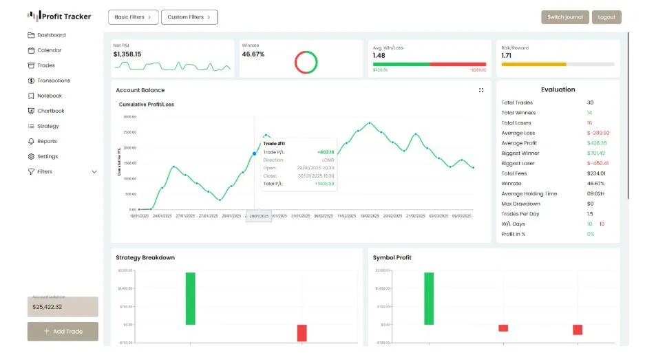 If you prefer a faster, automated way to log trades, tools like Profit Tracker simplify this process by automatically tracking key metrics and presenting them through easy-to-read charts.