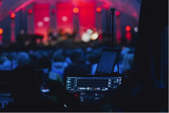 https://unsplash.com/photos/a-stage-with-a-laptop-and-microphone-in-front-of-a-crowd-UCbMZ0S-w28