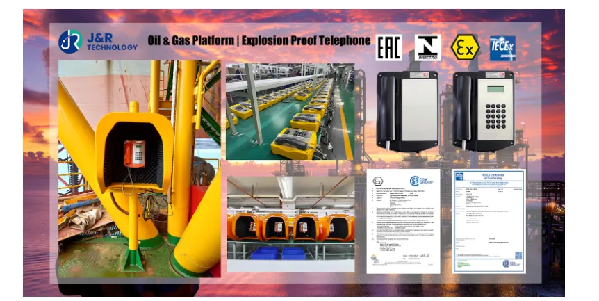 Another instance is installing J&R’s JREX106 series telephones across offshore oil and gas drilling platforms (onshore and offshore) around the world. These certified phones are able to work with safety in Zones 1, 2, and 22, resisting salt spray, vibration, moisture, and dust. Additional accessories, like explosion-proof alarms and noise-proof hoods, helped maintain reliable communication even under harsh environmental conditions.