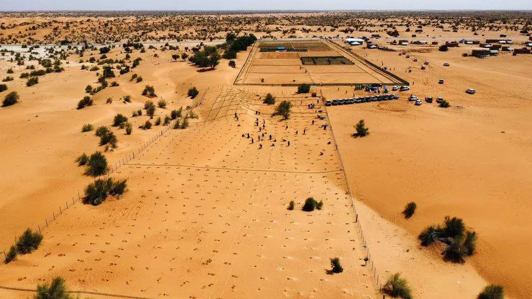 The concept of establishing a cooperative ecological demonstration site in African desert regions has been under discussion for years. The project site spans approximately four hectares and integrates multiple desert control solutions, including straw checkerboards, vertical sand barriers, and mixed vegetation belts of trees, shrubs, and native grasses.