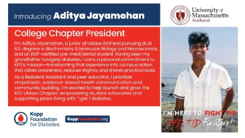 In a year defined by growth and innovation, the Kopp Foundation for Diabetes (KFD) celebrated one of its brightest examples of youth leadership: the rise of its University of Massachusetts Amherst Chapter, founded and led by Aditya (AJ) Jayamohan.