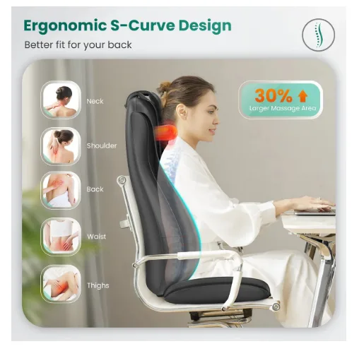The office environment can be stressful and hard on the body. Long hours spent at a desk, staring at the screen, or hunched over paperwork may cause a lot of discomfort, particularly in the neck and back. With a heat massage function for convenience and rapid relief of office stress, the Snailax Shiatsu Back Massager is a fine choice that helps you get through the day in comfort.